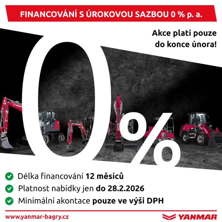 Do konce února nabízíme na všechny nové stroje Yanmar výhodné financování s úrokovou sazbou 0 % p.a.