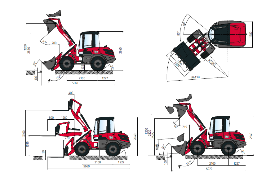 Rameno nakladače je vybaveno paralelní kinematikou, která dokáže držet přídavné zařízení rovnoběžně se zemí. Kompaktní rozměry nakladače, zejména jeho výška, zajišťují jeho vysokou manévrovatelnost.